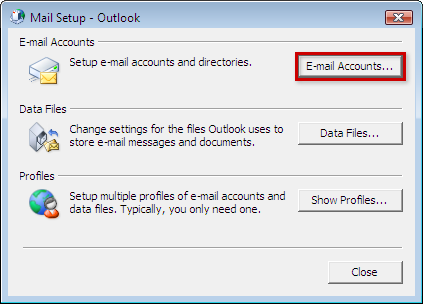 If using Windows Vista, Windows 7 or above, type Mail into the search box at the top-right of the Control Panel window to quickly find the Mail icon. Then, double-click it.